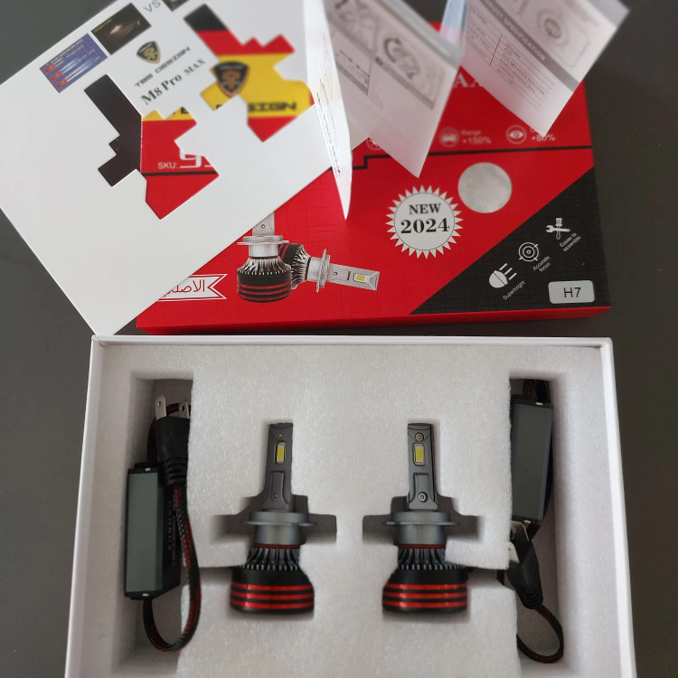 هدلایت M8PRO MAX TOBY'S اصلی ۶۰ وات واقعی نور سفید دارای فن خنک کننده ضد آب دارای کنباس یا خطاگیر برای ماشین های مولتی پلکس دارای چیپ CSP نسل جدید و خط کات دار مناسب خودروهای ۱۲ ولت ، ۲۴ ولت ، ۳۶ ولت مناسب برای پشت لنز